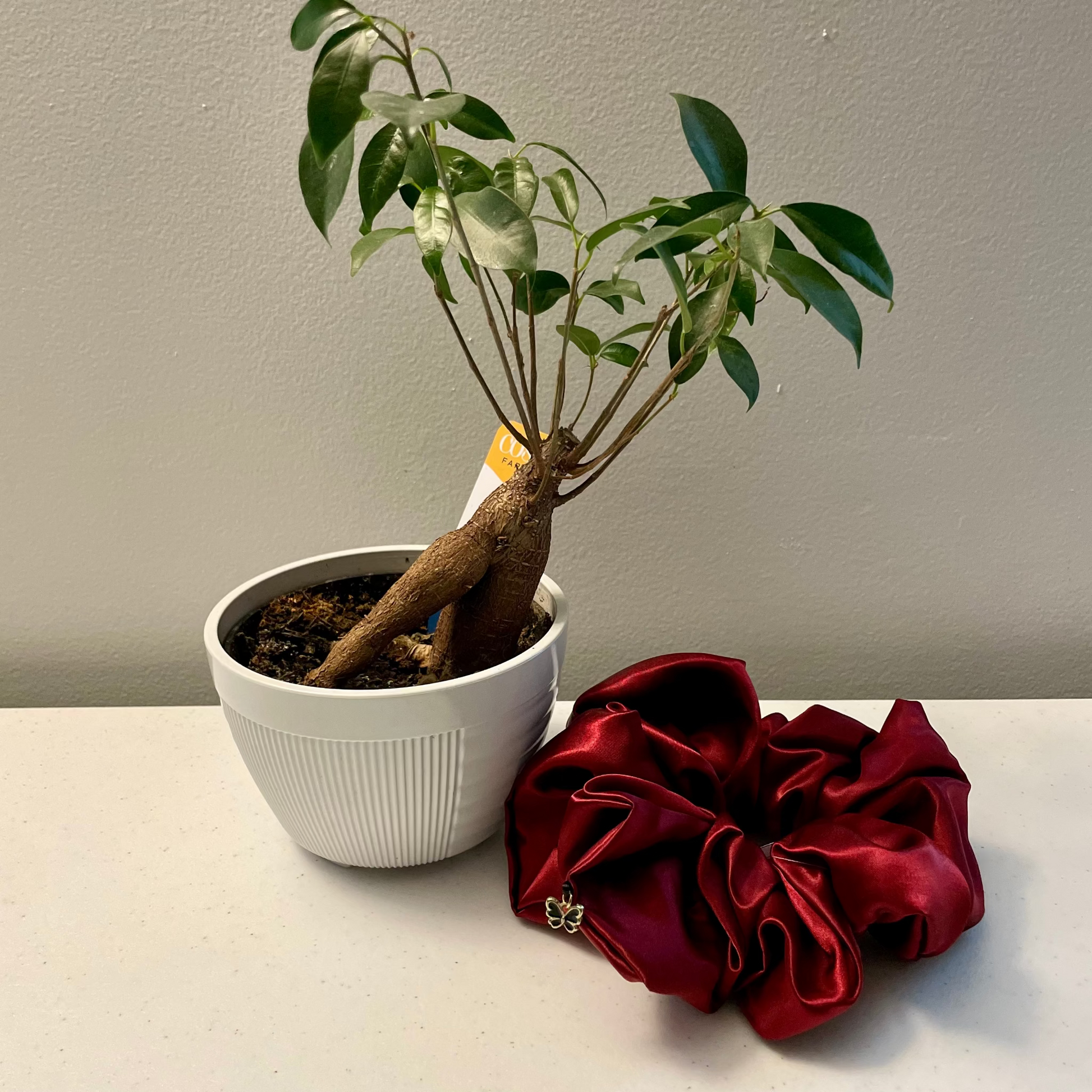 Our Burgundy Satin Scrunchie combines superior hair care with refined style. The oversized satin construction minimizes tension and friction, reducing breakage and frizz while maintaining a smooth, polished appearance. The luxurious fabric glides effortlessly through all hair types, making it ideal for creating everything from voluminous updos to sleek ponytails. The versatile burgundy shade seamlessly transitions between casual and formal settings. Satin scrunchies are the preferred choice among hair care professionals for their ability to protect hair integrity while delivering a sophisticated finish. Invest in an accessory that prioritizes both aesthetics and hair health. Butterfly charm comes in different colors.