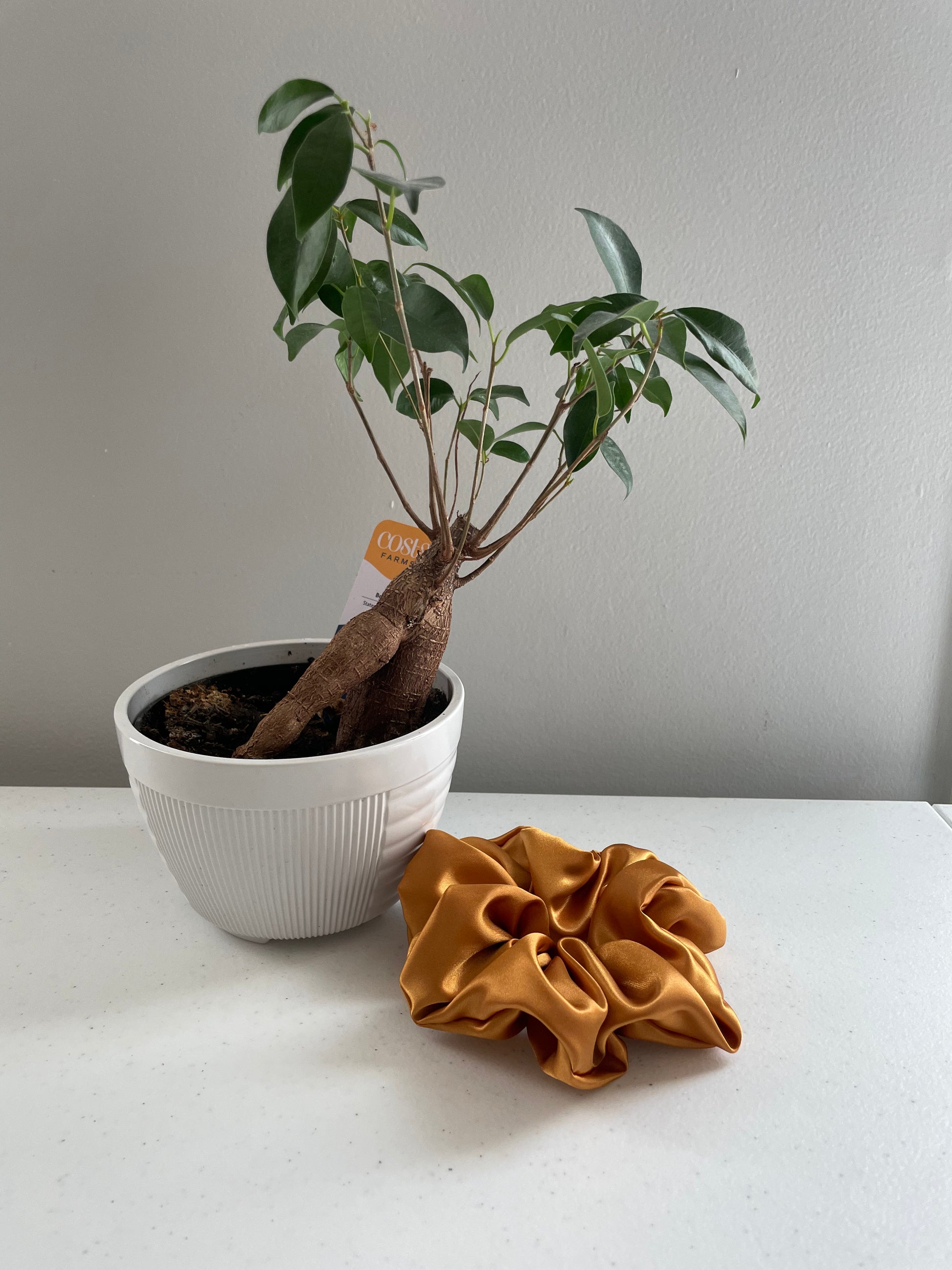 Experience the perfect blend of style and function with our Gold Satin Scrunchie—your new favorite way to keep hair looking fabulous. The generous size lets you create bold, statement-making styles while the silky satin material keeps strands smooth and damage-free. Whether you're pulling together a casual weekend look or adding the finishing touch to a dressed-up outfit, this sophisticated accessory does the heavy lifting. Treat yourself to a hair essential that's as fun to wear as it is practical, because who says functional can't be fabulous?